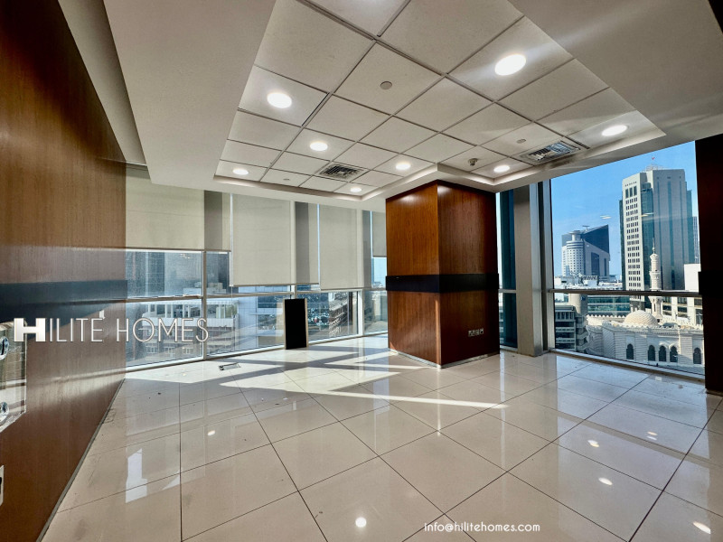 Prime commercial floor for rent in Qibla, Kuwait City, offering sea and city views in a secure business environment.